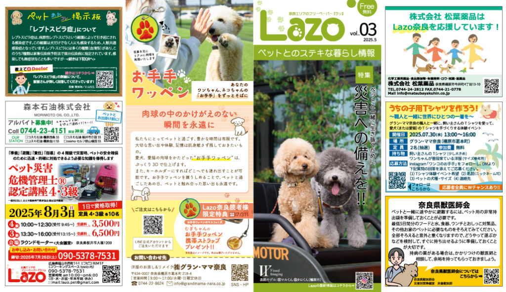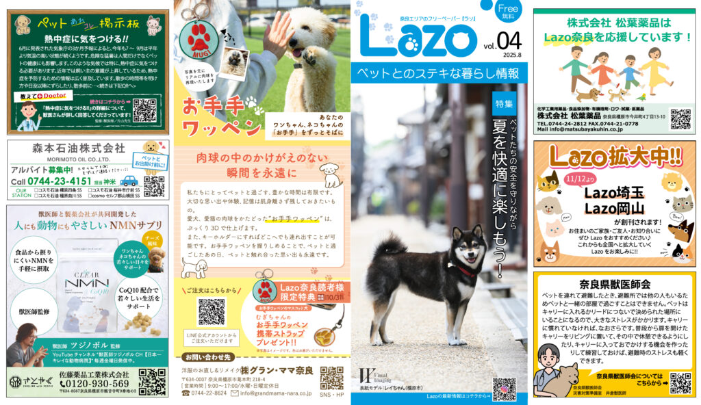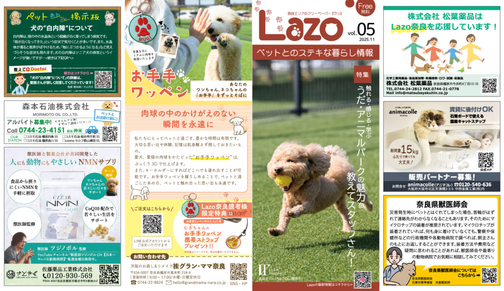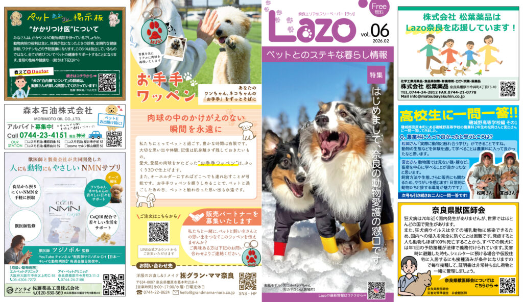 ペットとの暮らしに役立つ情報満載のフリーペーパー「Lazo奈良」発刊!